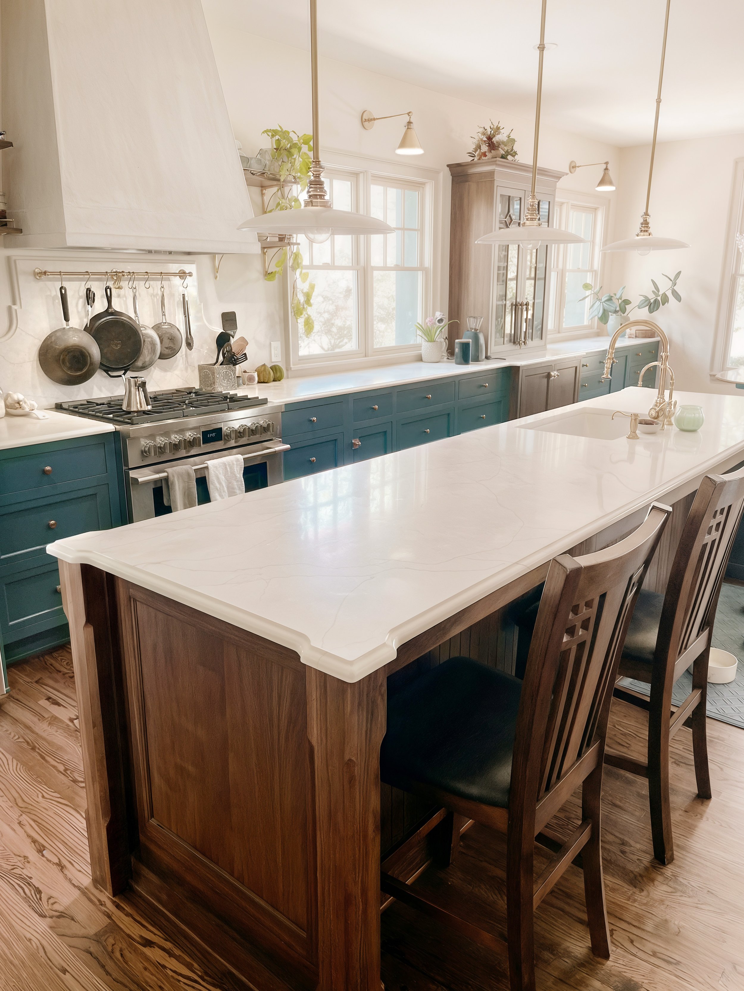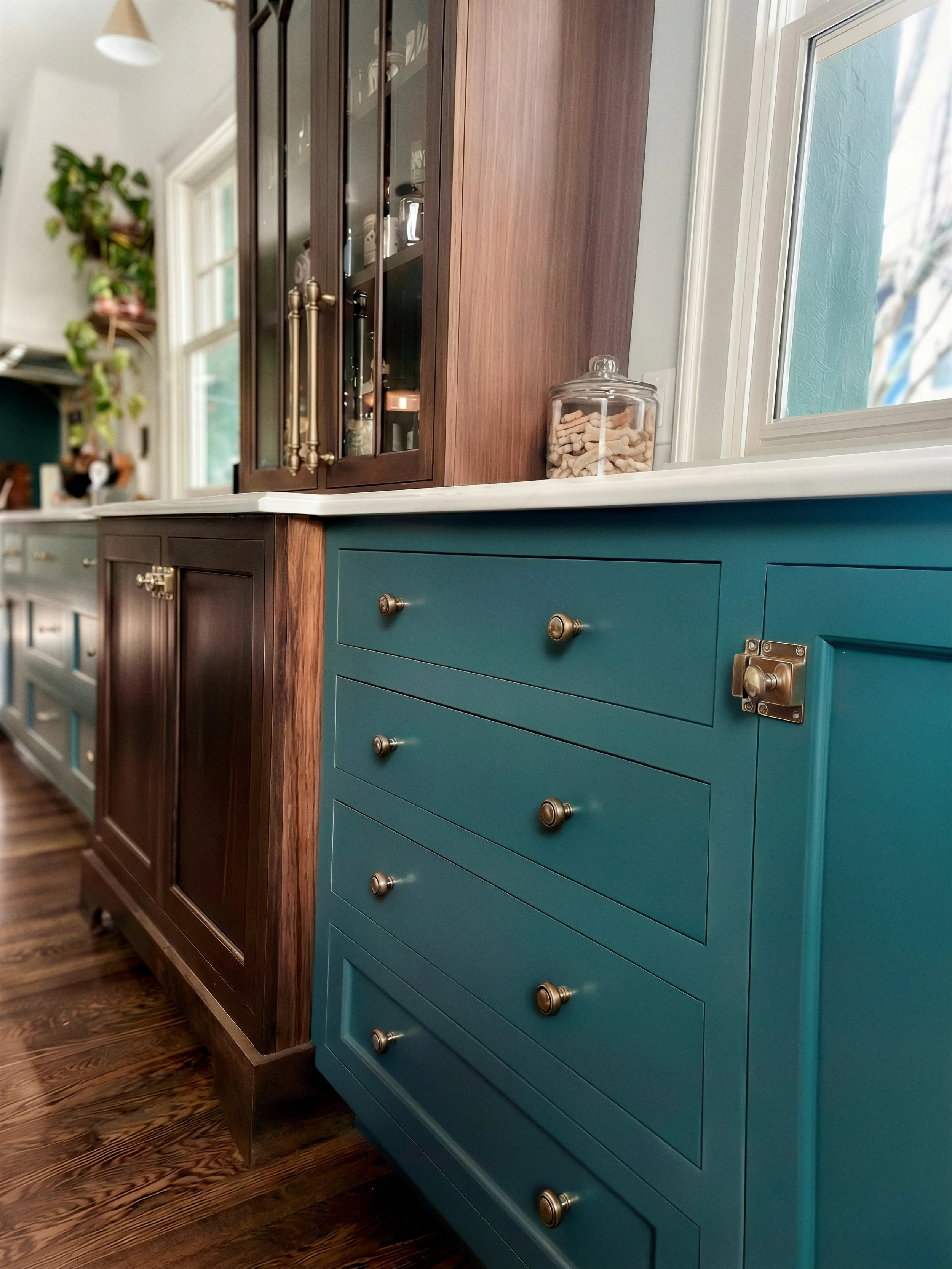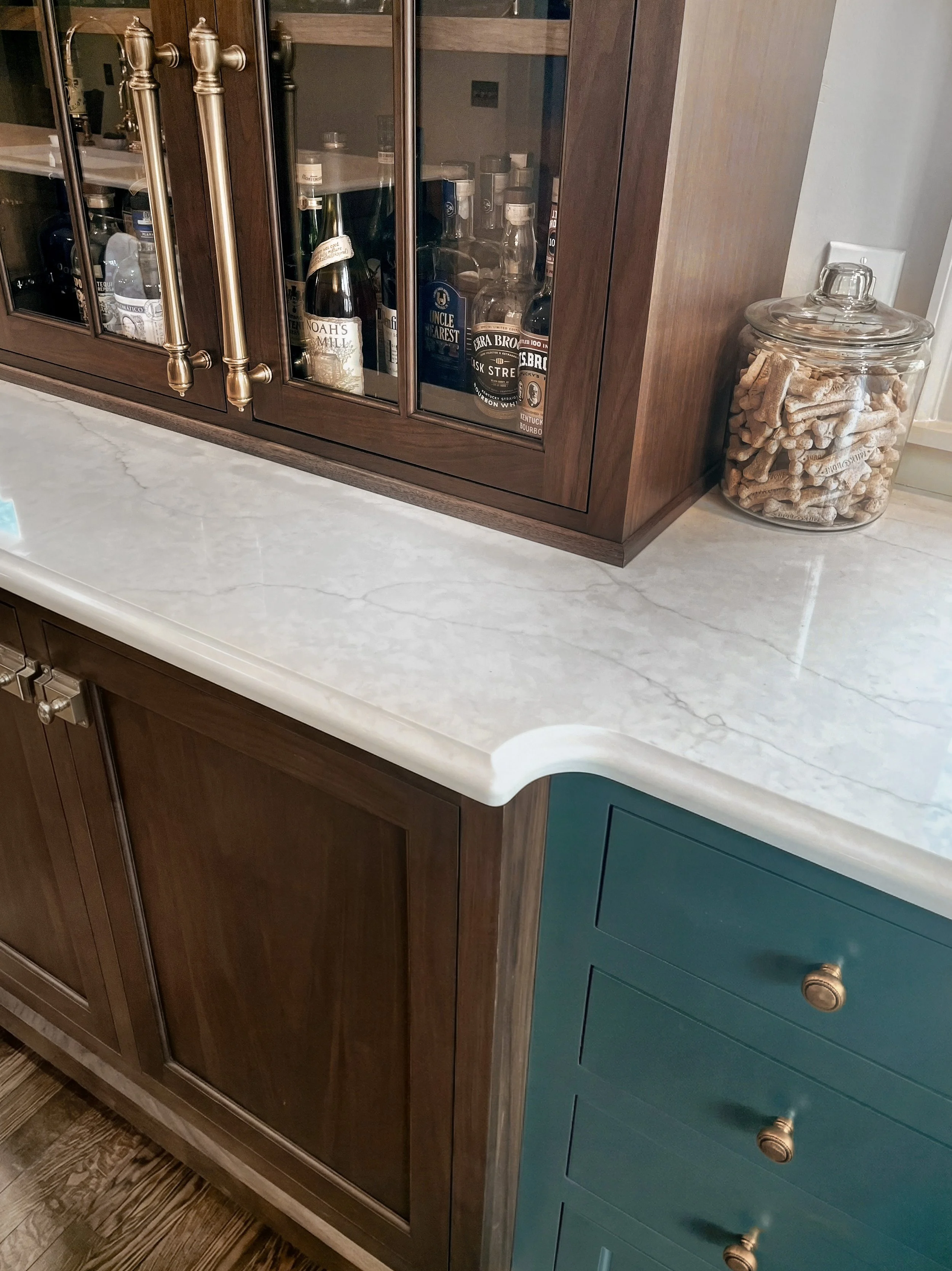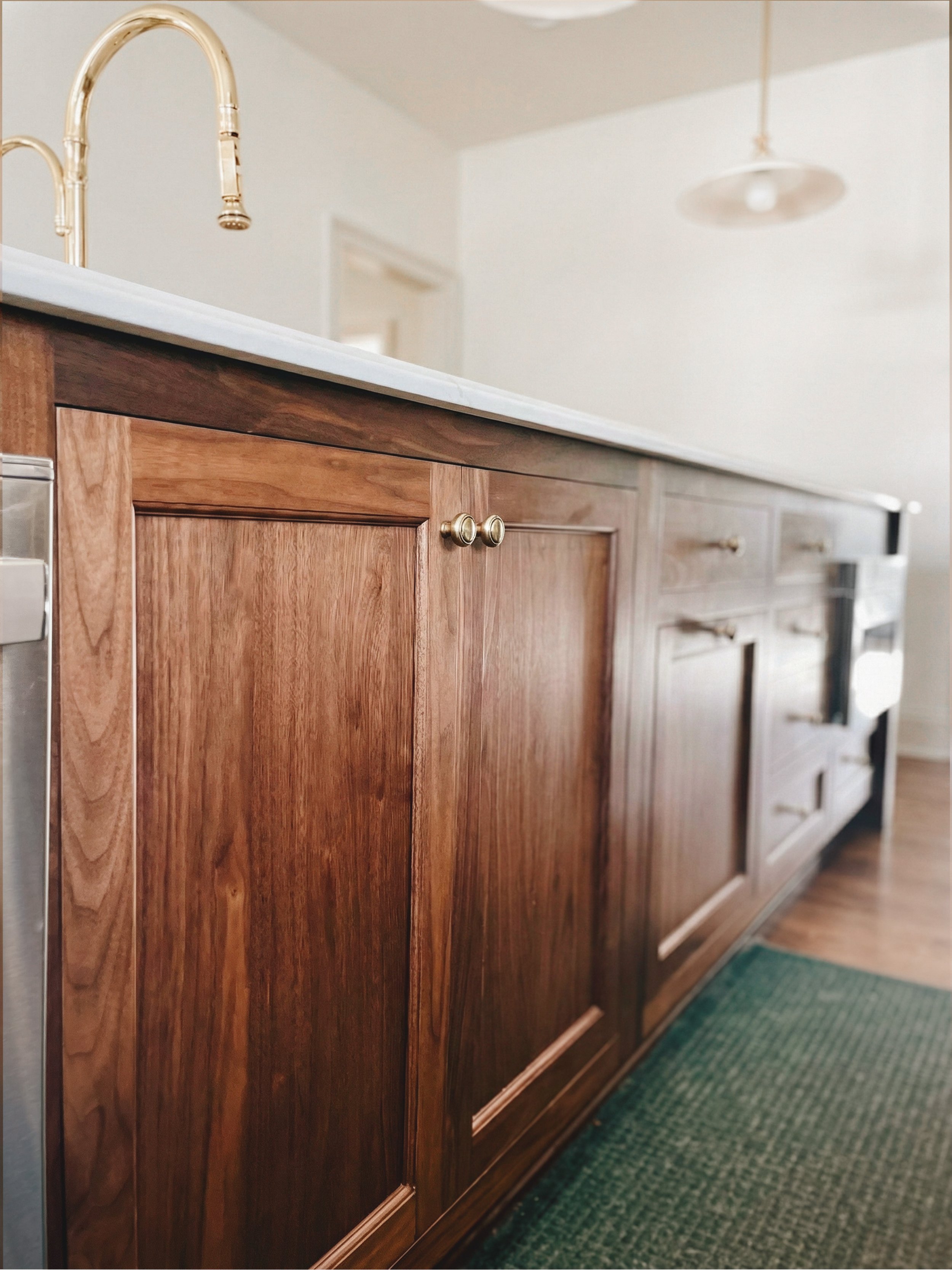 Inset Construction + Five Piece Doors + Stained Walnut + Painted Maple